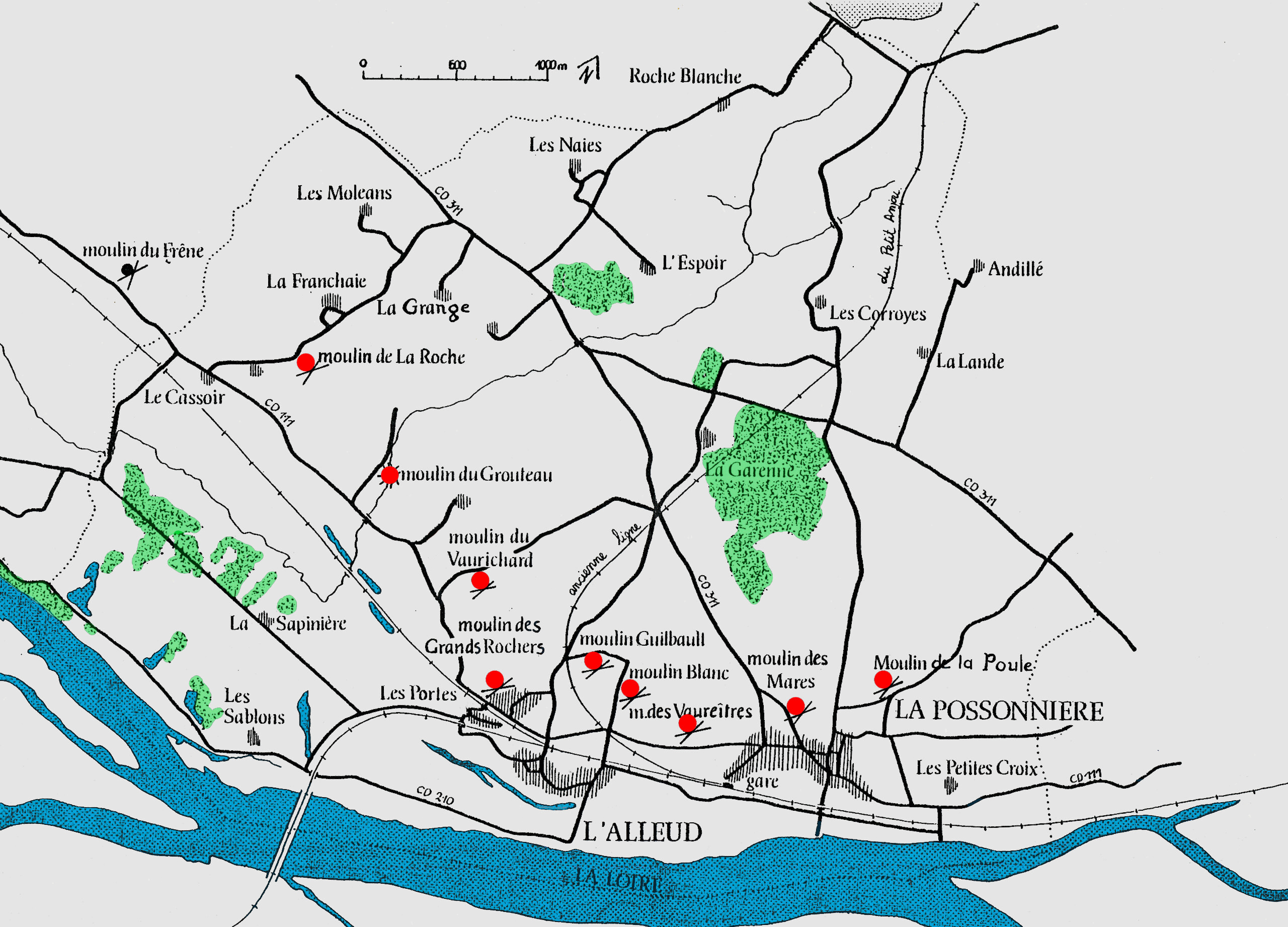 Mise à jour de : « La carte des Moulins de la Possonnière ». Localisation du moulin du Vaurichard.